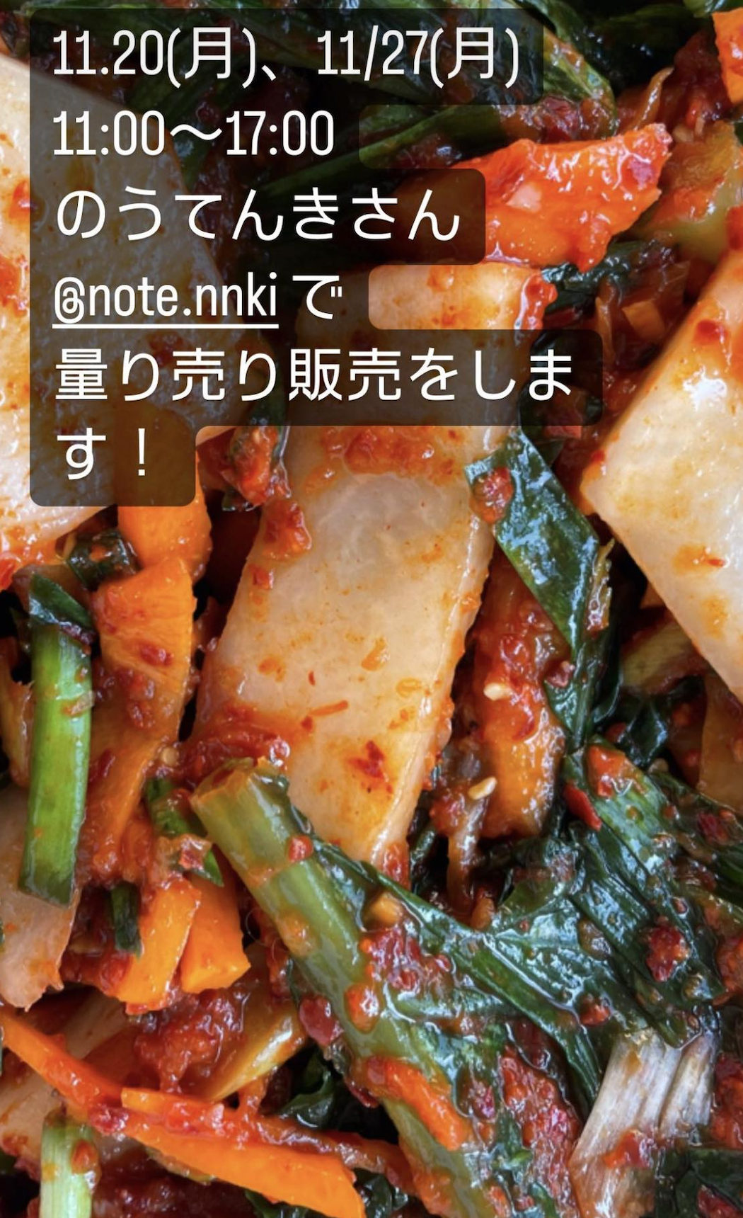酵素玄米がおいしい「のうてんき」さんでキムチの量り売り販売をします 酵素玄米がおいしい「のうてんき」さんでキムチの量り売り販売をします 日程:2023年11月20日(月)2023年11月27日(月)時間:11:00-17:00場所:のうてんき Access のうてんきさんの公式サイトより地図をおかりました! この記事を書いた人海辺のキムチ屋さんオーナーAKI神奈川県、湘南の端っこ「二宮」でオーガニック野菜を使ったキムチを作っています。着色料、化学調味料を使わない体に優しい手作りキムチ。発酵食品は生活習慣病の予防、腸内環境改善、美容効果があると言われています。https://kimuchi.shuho.workそのほかの記事イベント出展二宮ラディあん花の丘公園みんなの朝市で販売しますイベント出展にのみや朝市で販売します海辺のキムチ屋さんオーナーAKIの記事一覧